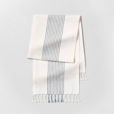 Navy blue and white table runner.