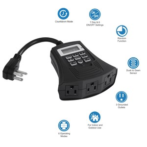 Outdoor light timers waterproof, dust to dawn light sensor, 100 ft range remote control, plug in timer switch with 3 grounded electrical outlets, 15amp, ul listed 47 out of 5 stars 377 $1399 $ 13 outdoor light timer. The bare copper wire or green wire is the.