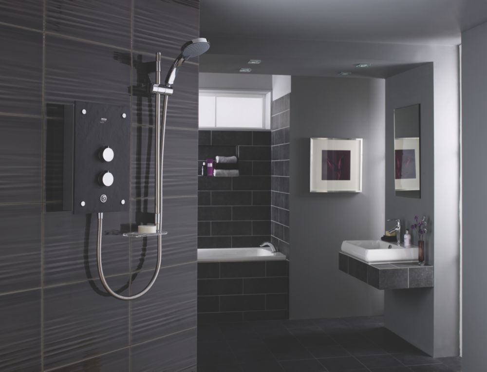 Triton Amore Electric Shower Gloss Black 9 5kw 166 63 from www.wholesaledomestic.com Ideas for the slate grey bathroom tiles glorious slate shower tile with black slate shower tiles stained with montauk black slate tile inspired remodeling tile sullivan montauk black slate tile. Given all the particularities of slate installation and maintenance of slate in the shower you may want to consider some other options. Brushed steel has always been a favourite when making a super stylish design statement. We previously had triton ivoryii electric shower which broke down so we decided to go for this sleek black design lovely looking shower. A little black in every glamorous element is a compulsion. Due to its pivot shower door opening system, it can be installed without a shower tray. Today, our name stands for the best of it is still early to judge its quality, but it looks really posh nice shinny black, a nice change from the cheap looking plastic of other shower in this price range. 1 bar at 8 litres per minute.